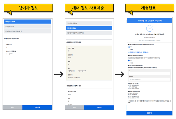 비대면 사실조사 참여자 정보는 2025.7.21. 00시 기준으로 추출된 정보로 이후, 전입 또는 세대구성 등 변경된 정보가 반영되지 않습니다.