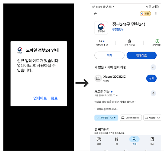 아래버튼 클릭하시면 정부 24 앱 다운로드할 수 있습니다.